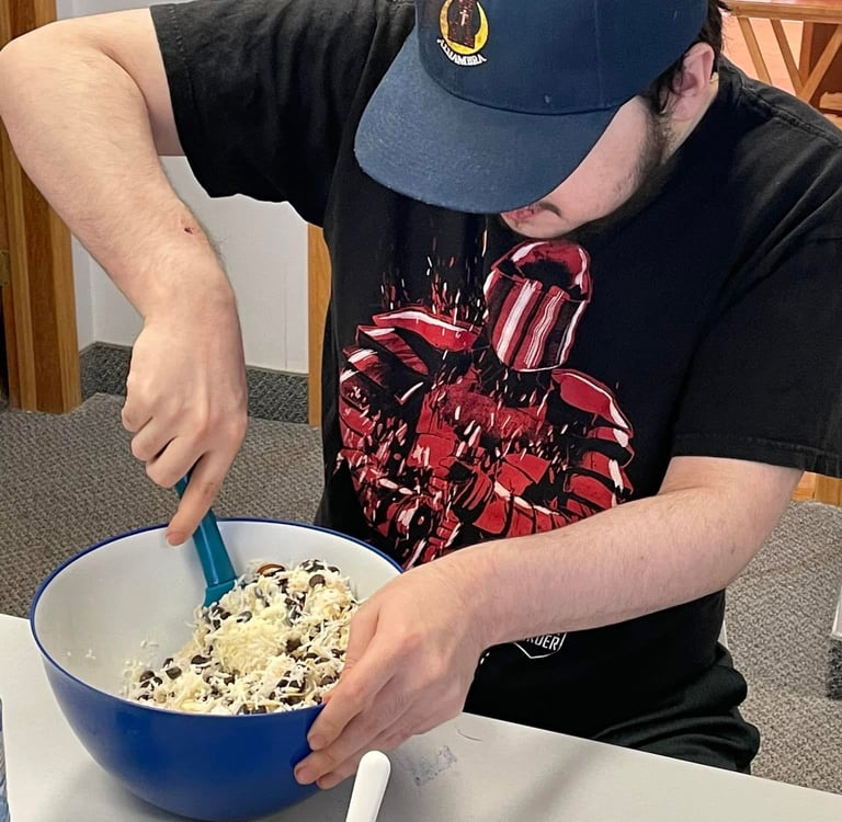 Food is certainly a love language at Vibe Community Connections! As participants arrive they settle in to visit friends with coffee, tea, and a variety of soft drinks available. Each group will have a planned snack where participants are able to make or just simply enjoy if they choose. As facilators we are concious to meet a variety of dietary needs!