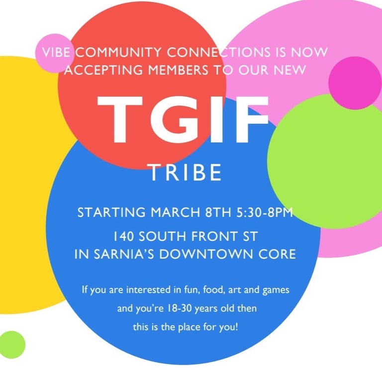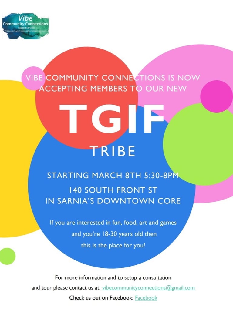 Vibe Community Connections is a recreational program to enrich the lives of adults and teens through a variety of creative programming. Through 35 years of combined experience, owners and operators Tina Leonard and Sarah Singleton; have created this community program free of barriers and open to meeting the unique support needs of participants and families. As a private service our members are able to utilize PASSPORT funding annually received for life enrichment from the government of Ontario.